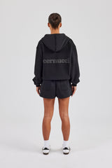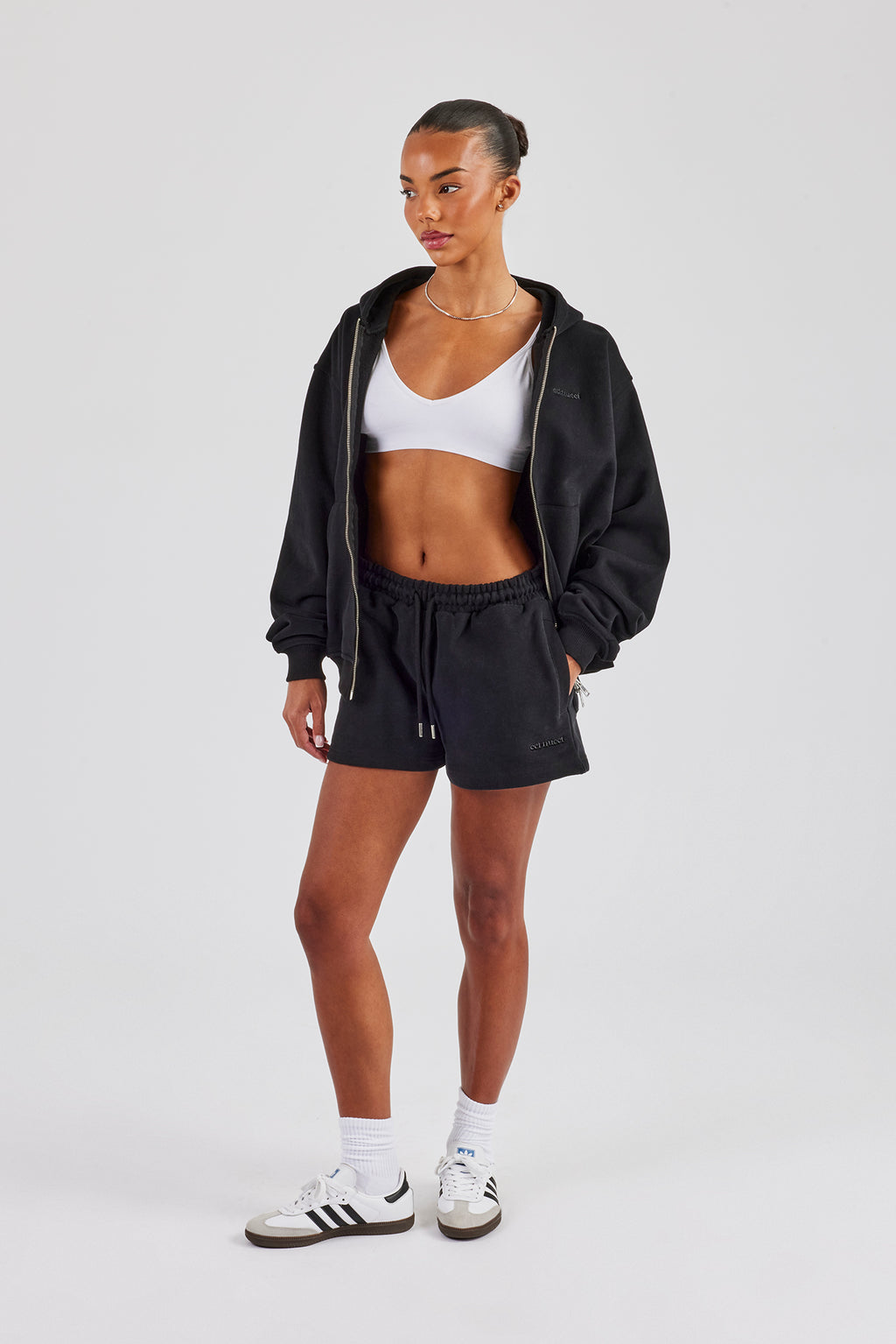 Black shorts in a relaxed fit finished with tonal embroidered branding. Premium heavyweight soft touch jersey.